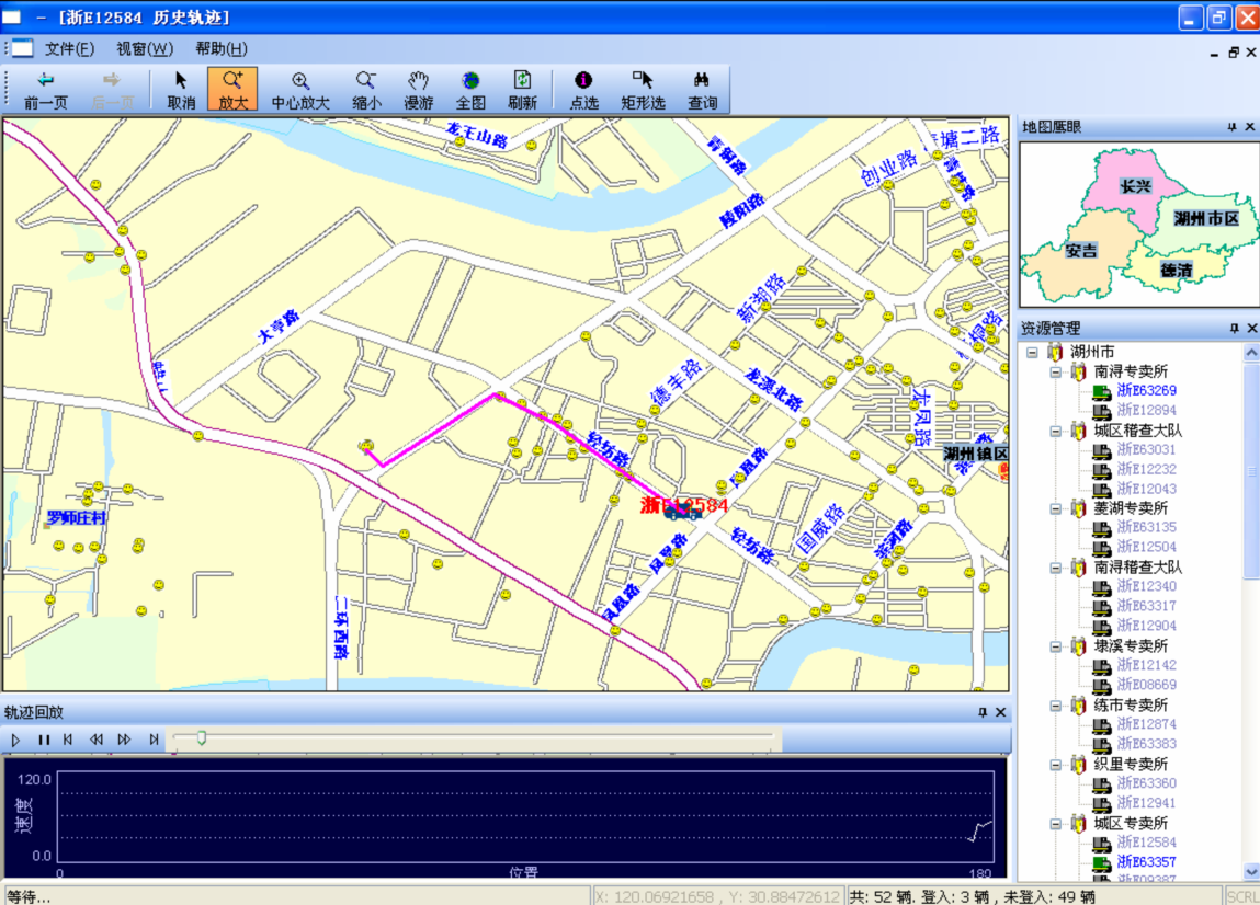 5)对某个车辆进行轨迹回放,系统提供车辆行驶路线的轨迹回放功能,用户可以对轨迹回放参数进行设置